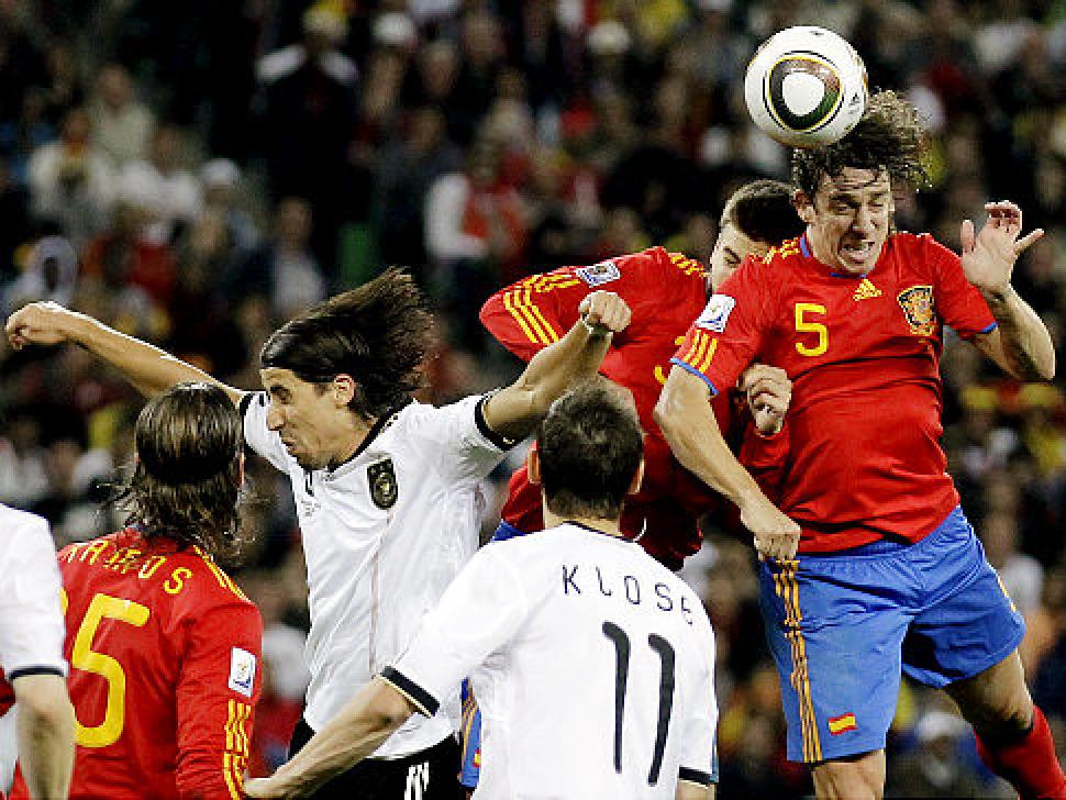 Carles Puyol scores – assisted by Xavi – a hugely significant goal against Germany (1-0) to put Spain into the 2010 World Cup final where then la selección went on to win in the final by the same score against Holland (1-0) to win the World Cup for the first time ever in their history.