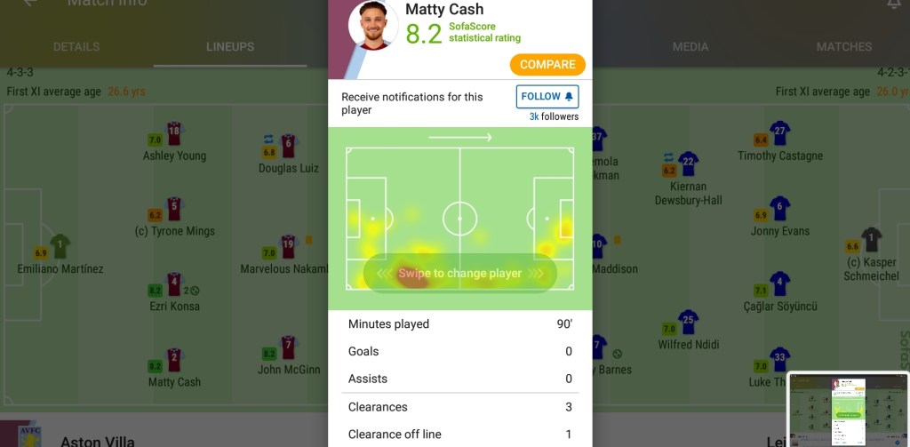 Martinez, Cash, Konsa, McGinn, Watkins/Ings are options that stand out. Cash is getting in very advanced positions, and at times in positions to get in the area and/or shoot from around 20 yards out.