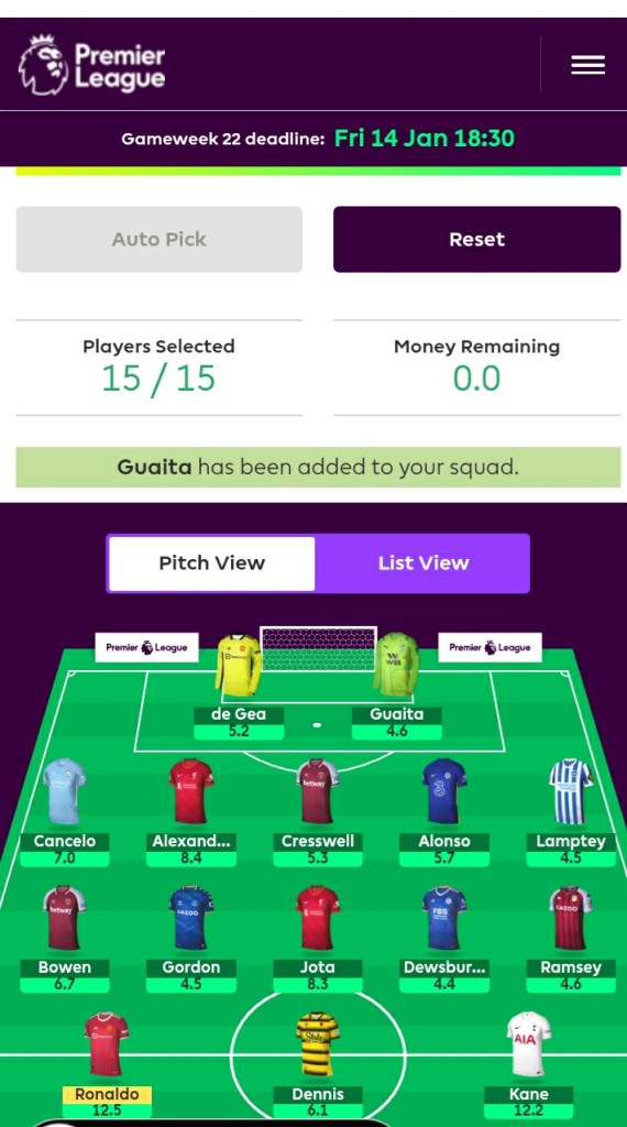 Kane, Dennis, Ronaldo make a strong front 3 (high ownership/eo, arguably the most clinical attackers available at the moment and mainly face bottom half sides).