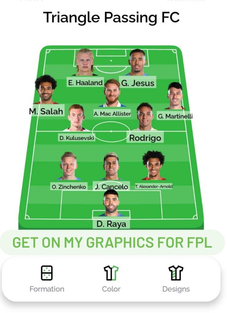 As you can see here (the image above), I play 3-5-2 in FPL – I told Mac Allister to push up a bit – he banged a pen in the top bin ish. I like how he strikes a ball & he’s got lovely technique I think.