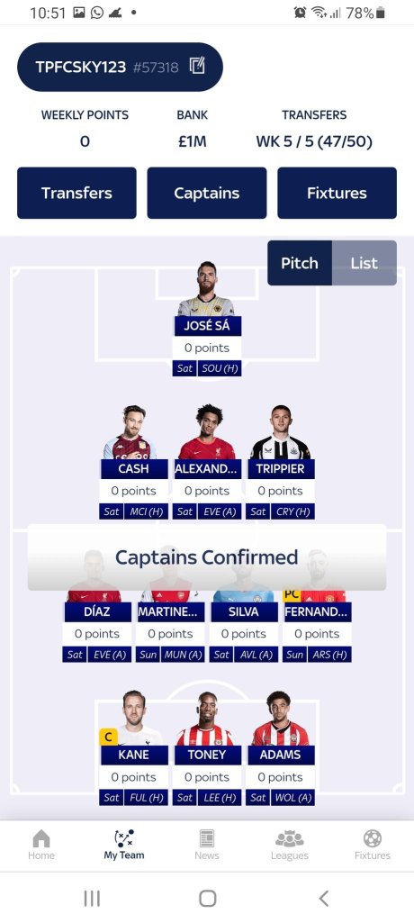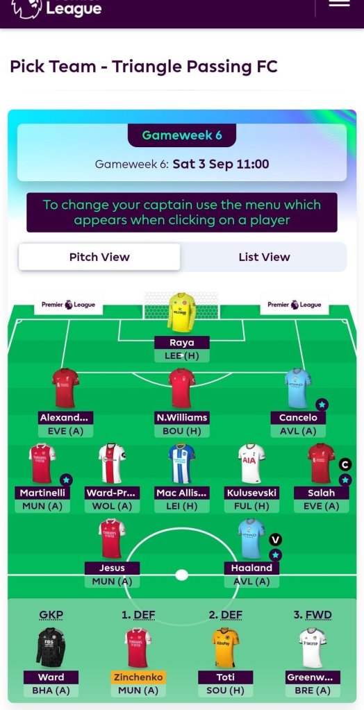 So I’m very much in the zone now. Weather is a bit muggy, just had a 20 minute walk, something like that. Who’s counting. GW5 was about 10 minutes ago wasn’t it. Well. More footy on, tunes on etc. Who am I to complain.