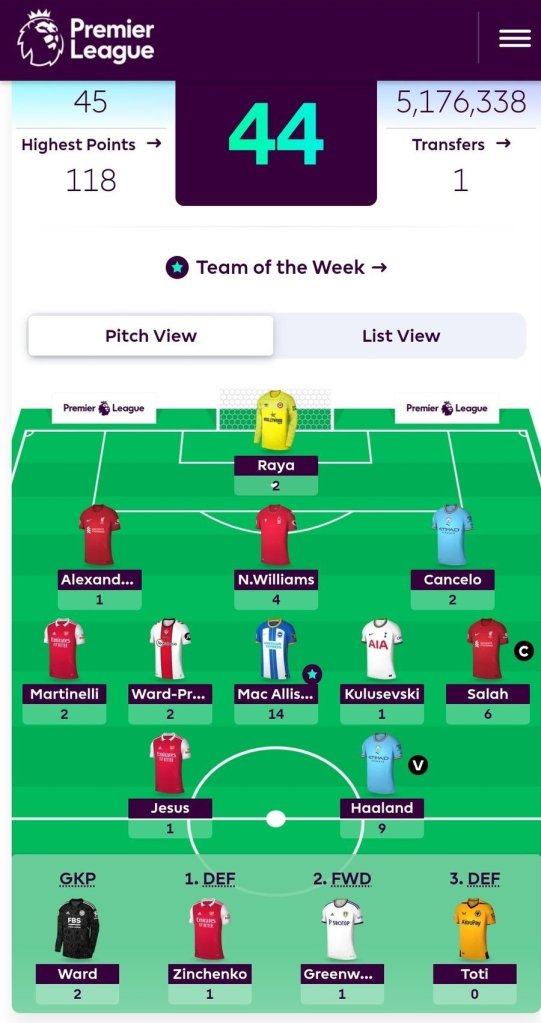 Mac Allister banged in a brace. Sound that lad. The technique for that free kick was ridiculous – ridiculously good. Getting him in GW5 was like a feeling or gut feeling really or something. Besides, you can roll the dice a bit sometimes.