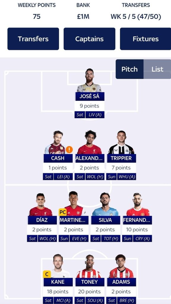 I think it’s the little wins in fantasy footy – two significant captain returns on both match days – a hat trick from Toney (could’ve captained him in theory but whatever my glass is half full).