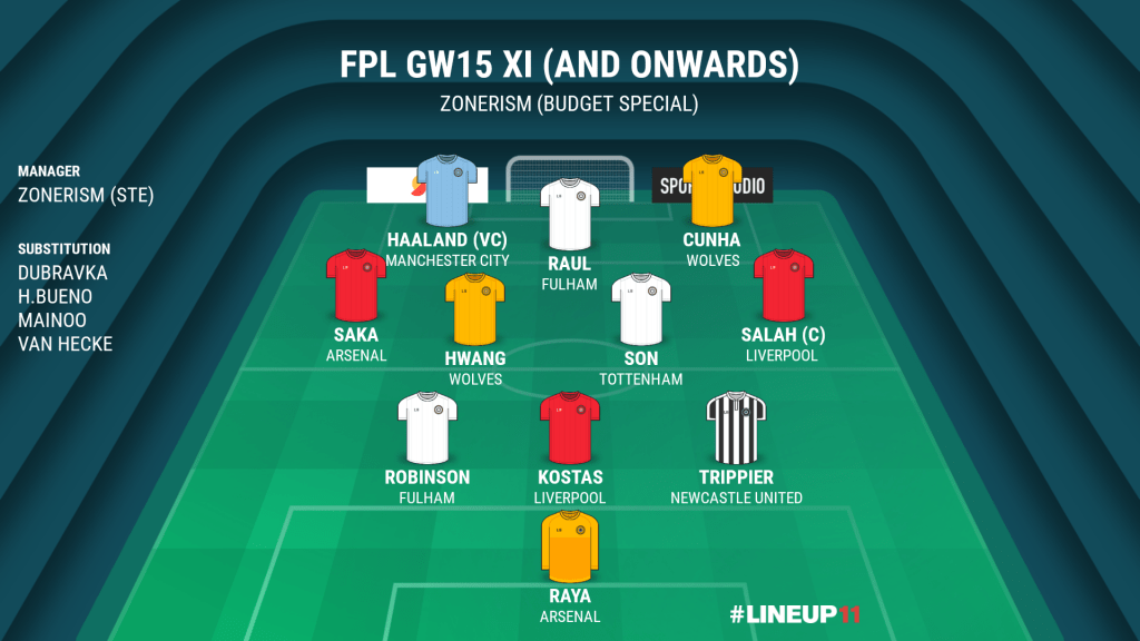 Erling Haaland (VC) is the league’s top scorer – 2 assists in GW13 – faces a Villa side with a strong home record.