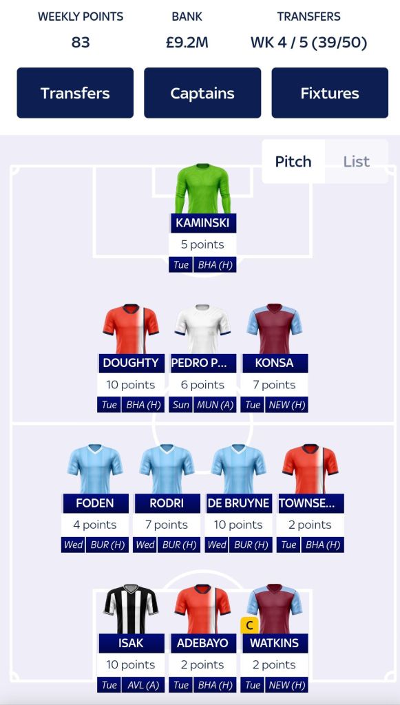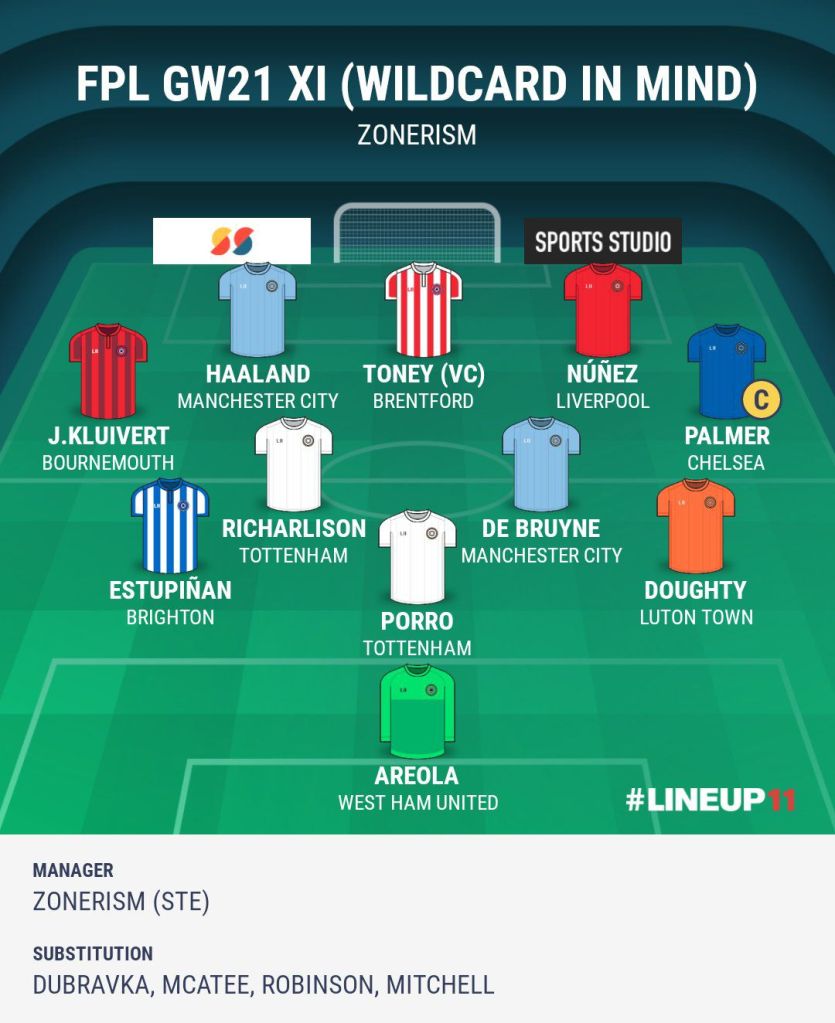 Effectively 6 left in play for the XI (auto sub factor) & food for thought for GW24 transfers in SkyFF with the likes of Bakayo Saka, Ivan Toney, Virgil Van Dijk, Diogo Jota and Matheus Cunha being potential transfers to be made from a possible 5 available for any given GW.