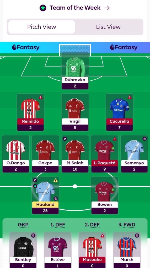 • Attacking full backs are not plentiful in 2025/26 – trends in the Premier League change every season – in 2025/26 cheap centre backs, Sunderland full backs do bits as starters or sub 1s/sub 2s – frees up funds for the number 10s and/or star forwards!