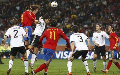 Carles Puyol scores – assisted by Xavi – a hugely significant goal against Germany (1-0) to put Spain into the 2010 World Cup final where…